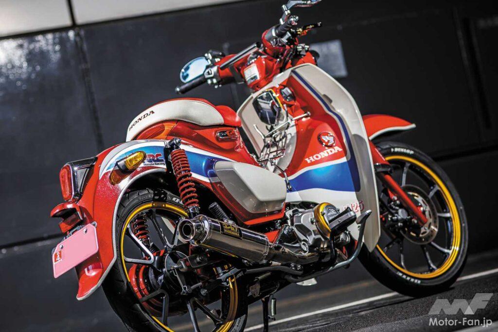 過去にMotoGPライダーがレプソルカラーのカブでファンレースに参加したこともあるが、スポーツとは対極のカブにレーシーなグラフィックを与える発想が新鮮だ。