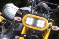 さて、このスーパーカブC125に話を戻そう。カッティングシートを駆使してC125の滑らかなボディをトリコロールに仕上げた。オリジナルに沿ってフォークやリアショック(エンデュランス製)は赤に、ホイールやスプロケカバーなどもエンジンの金に見立てており、とくに青ラインの入り方が絶妙なのだ。シートは社外のツートンカバーをあんこ抜きして装着し、マフラーはヨシムラ製サイクロン、タイヤはオンロードバイアスのダンロップ(Q-LITE)を組むなど抜かりがない。