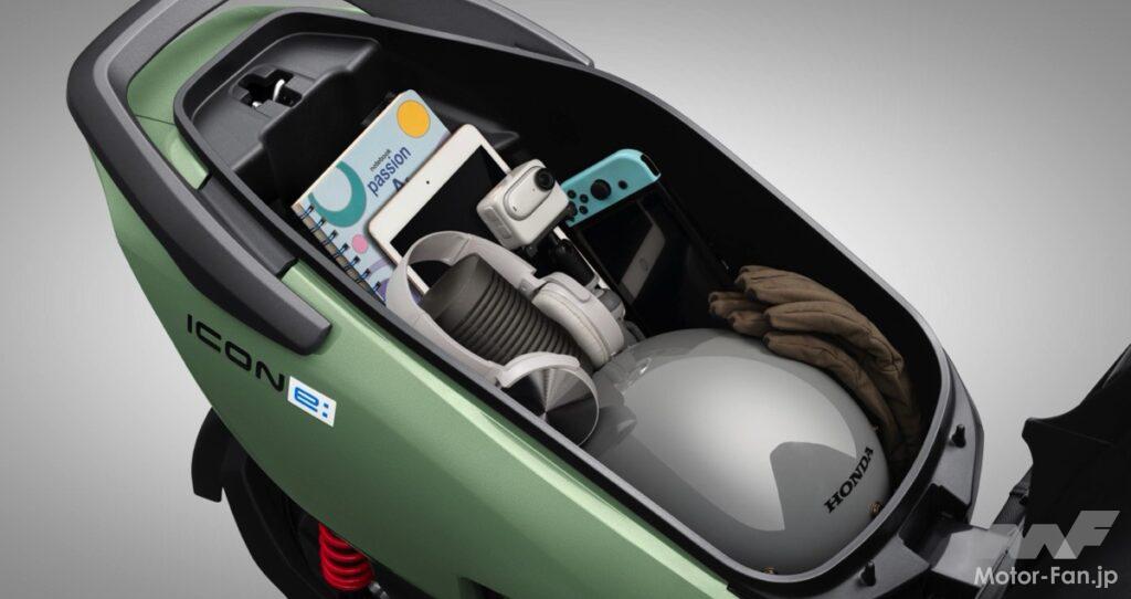 「ICON e:」は、STANDARD、SPORT、ECONの3つの走行モードを備え、ユーザーの好みや走行状況に応じて選択できる。また、狭い場所での取り回しに便利なリバースモードも搭載している。さらに、Bluetoothを介してスマートフォンと接続し、通話やナビゲーション機能を利用できるHonda独自のサービス「Honda RoadSync Duo」を装備したタイプも設定されている。