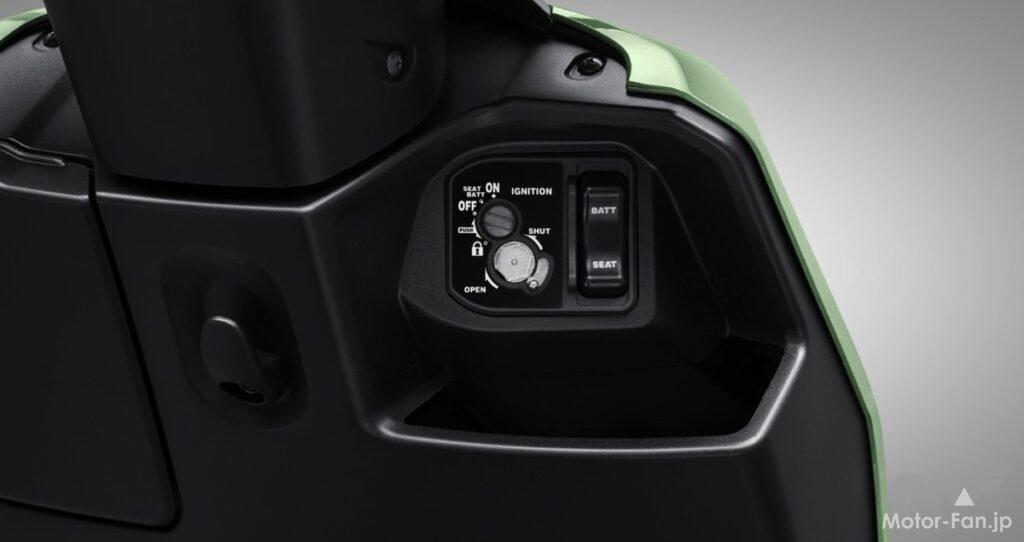 LEDライトを全面的に採用し、フロントライトにはLEDデイタイムランニングライトを装備している。メーターはLCDディスプレイを採用し、速度やバッテリー残量、時計などの情報を表示する。シート下には26リットルの収納スペースを備え、ハンドル下部には小物入れとUSB充電ポートも装備している。