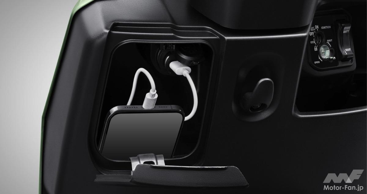 LEDライトを全面的に採用し、フロントライトにはLEDデイタイムランニングライトを装備している。メーターはLCDディスプレイを採用し、速度やバッテリー残量、時計などの情報を表示する。シート下には26リットルの収納スペースを備え、ハンドル下部には小物入れとUSB充電ポートも装備している。
