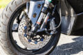 RPM製の別体タンク付き倒立フォークにはシャークファクトリー製鍛造アルミホイールを組み合わせ、フローティング式ローターにはBMW用のラジアルマウント式ブレンボキャリパーが採用されている。