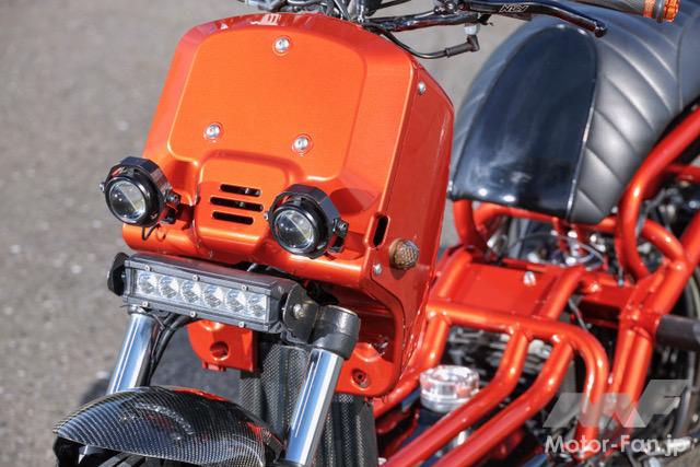 ヘッドライト周辺はフルLED化されており、ウインカーもLEDが採用されている。フロントフォークはGJMS製をチョイス。