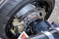 リヤにもウエーブタイプのローターとブレンボ製キャリパーを投入してディスク化。ホイールはワタナベ製の12インチとしている。