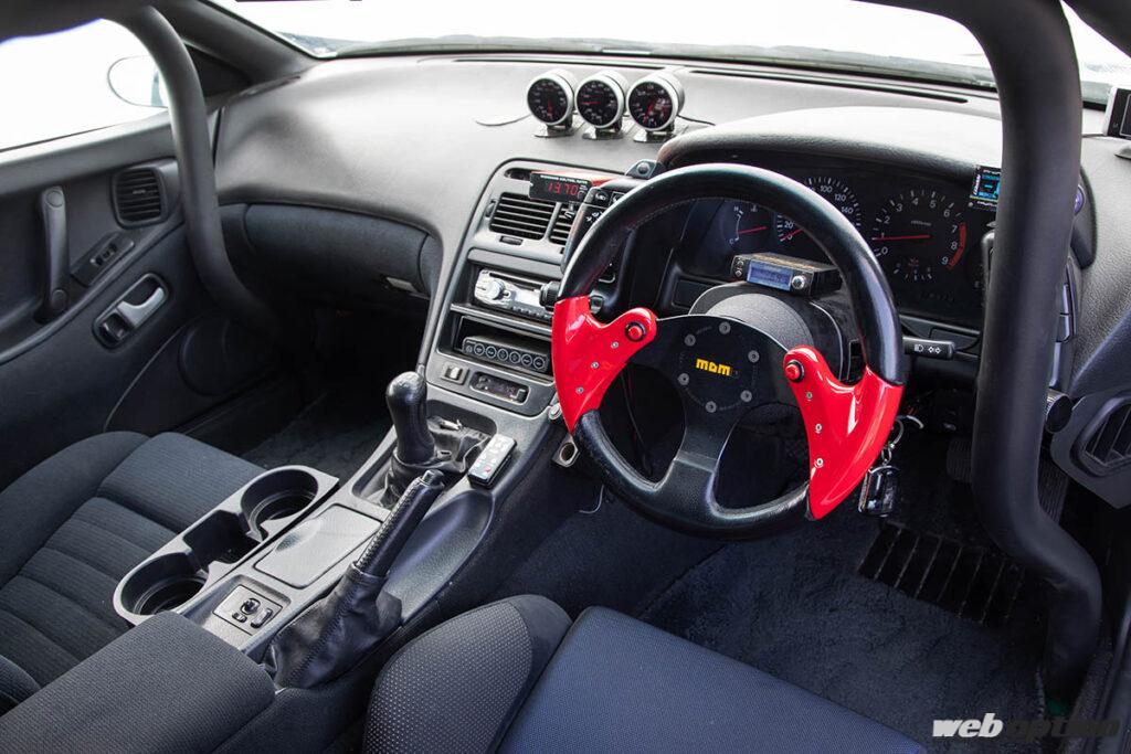 エンジン本体はバランス取りや重量合わせなどをキッチリした上で、ニスモタービン改をドッキング。フルコンのLINKで制御し、最大ブースト圧1.2キロ時に約500psを発揮する仕様…だったが現在はタービンブロー中。その修理も兼ねてニューエンジンを製作している。3.1L化やGTIII-RSタービンの導入を検討しているが、600ps以内に抑える予定とか。