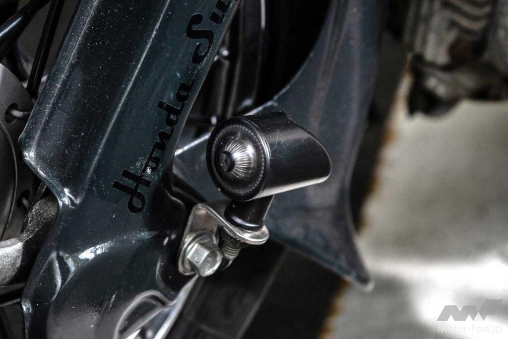 「昭和の新宿ゴールデン街」をコンセプトに、今や貴重なAA01最終型をレトロに味付け。乗り心地を損なわない範囲でローダウンした車体に、クルーザー用の砲弾ライトやママチャリ流用のフォワードハンドルが絶妙にマッチする。