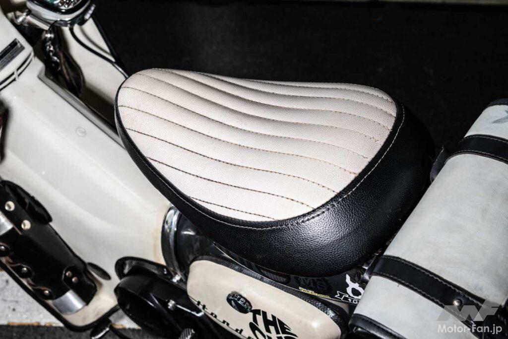 シートはストライプのツートンを採用。バッグやホルダー類をレザーで統一し、全体をアメリカンライクにまとめ上げた。