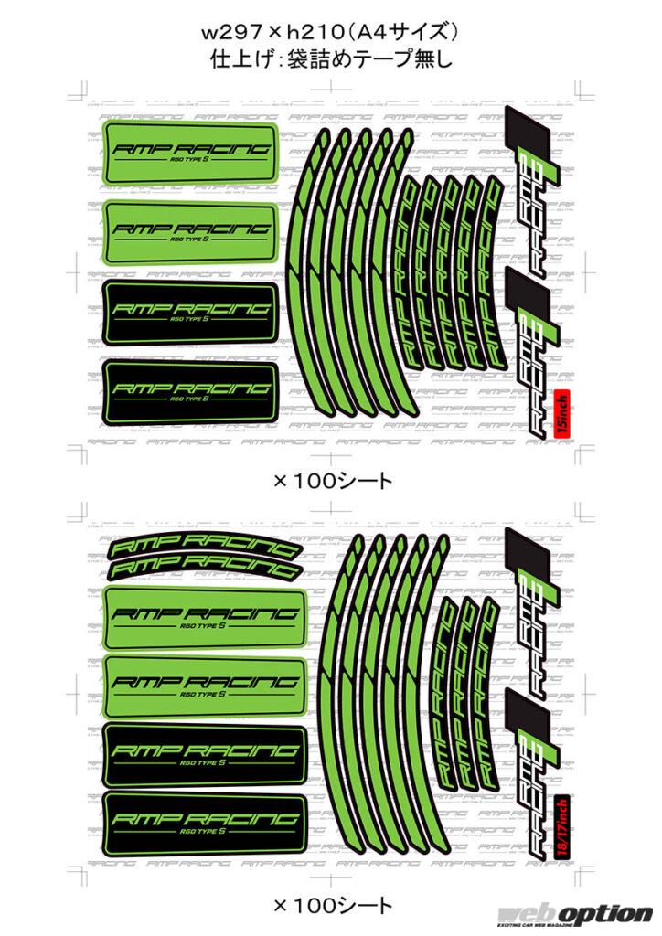 厚みあるフランジを引き締めつつ、外周に躍動感を添えることが可能なロゴとストロボラインステッカー。サイズ別でアールが最適化されているため、リムアクセントをイージーに手に入れられる。