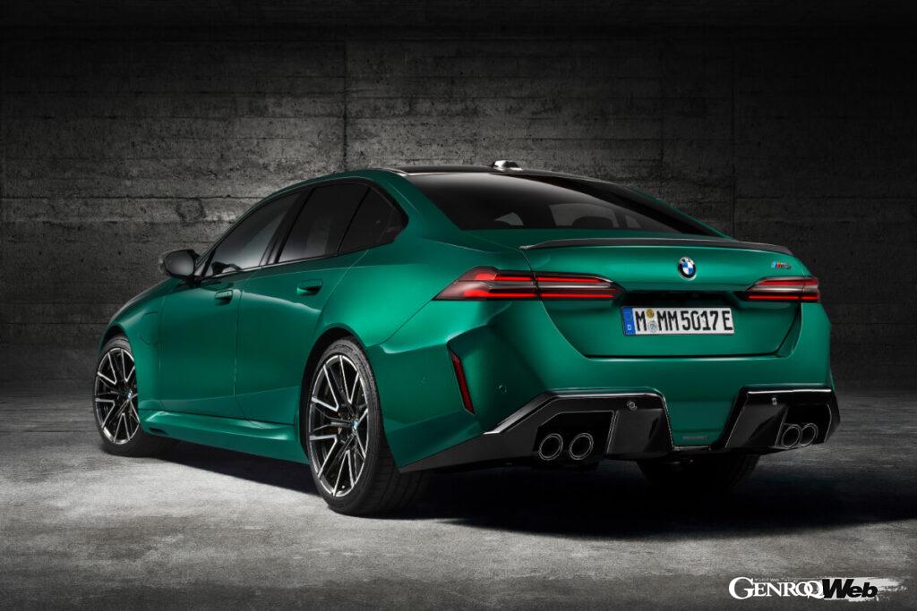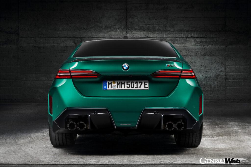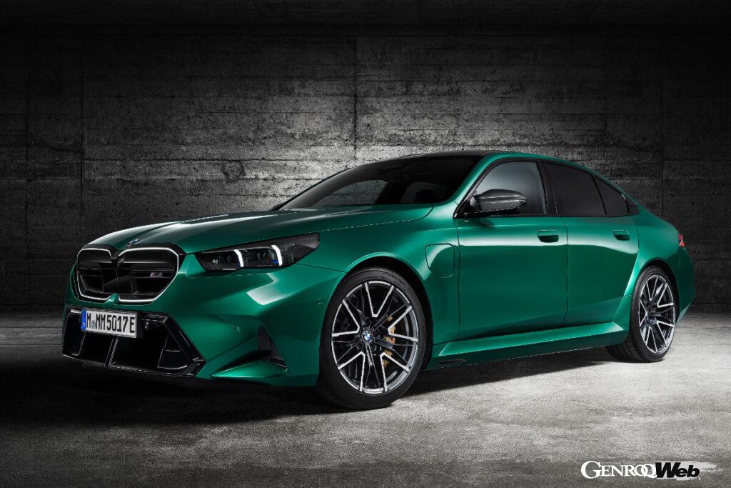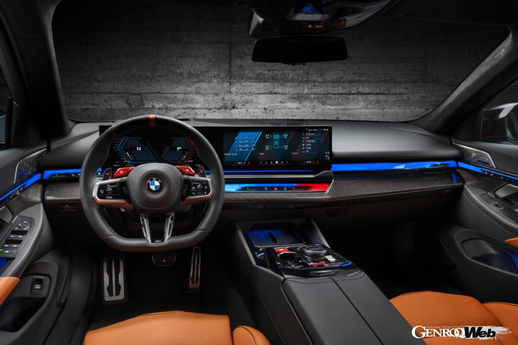 一方のM5はひと回り大きく、125mm長く、70mm幅広く、35mm高く、ホイールベースも45mm長い。だが、車重はほぼ同等の2.4tという重量級である。フォルムはより直線的で攻撃的で、「アイコニックグロー」のイルミネーションが備わるブラック塗装のキドニーグリルが高性能ぶりを象徴する。