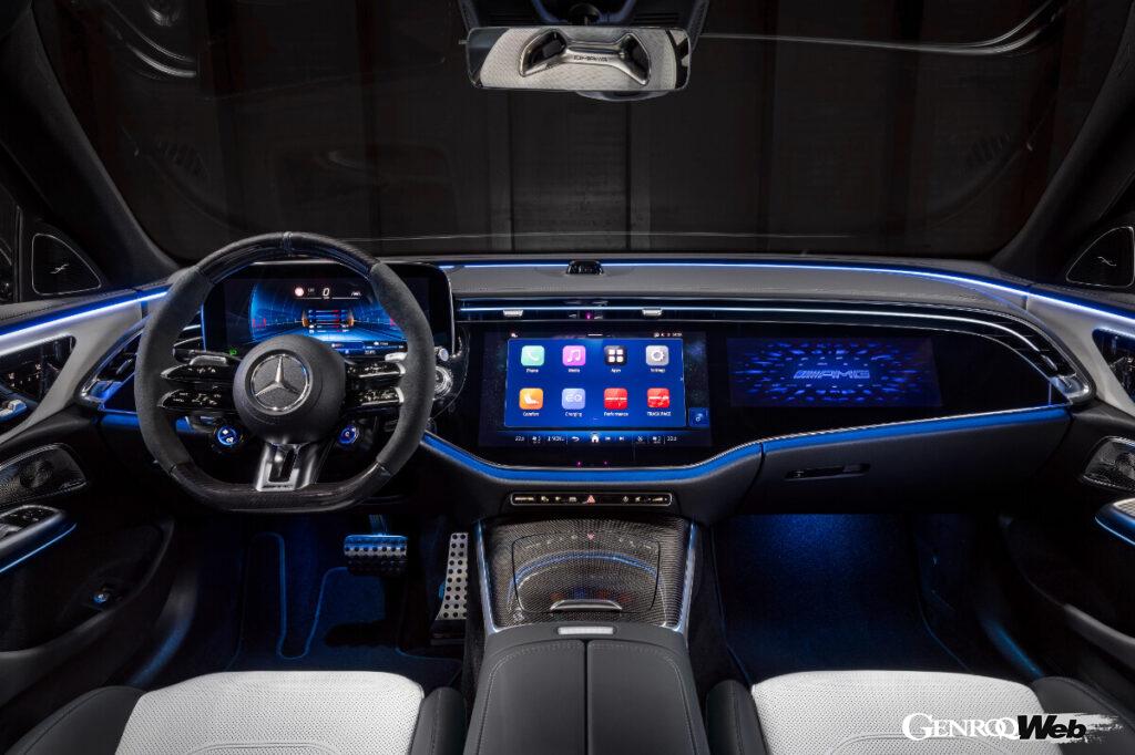 両車のシステム出力はE 53が585PSで、ローンチコントロール「レーススタート」使用時は612PSにまで引き上がるが、M5のシステム出力である727PSには届かない。ただし、EVとしての最大航続距離はE 53が101km、M5が75kmとなっており、PHVとしての実用性はE 53のほうが高いといえそうだ。
