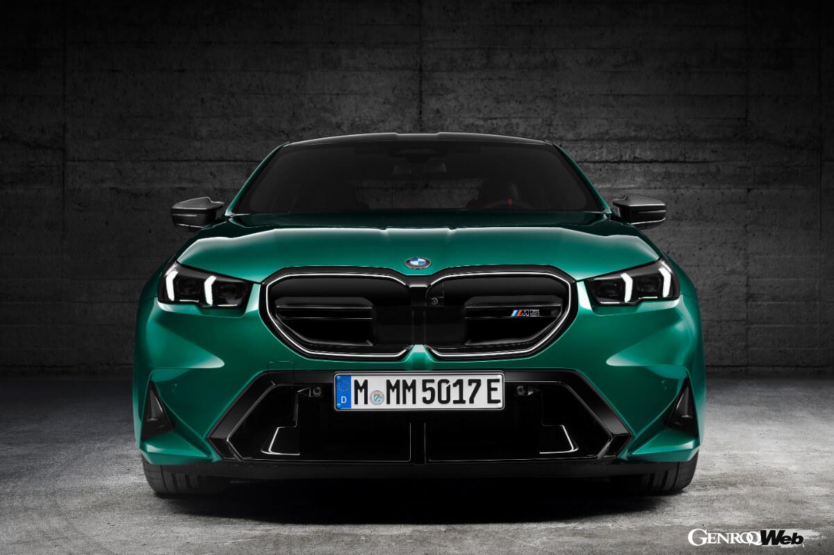 一方のM5はひと回り大きく、125mm長く、70mm幅広く、35mm高く、ホイールベースも45mm長い。だが、車重はほぼ同等の2.4tという重量級である。フォルムはより直線的で攻撃的で、「アイコニックグロー」のイルミネーションが備わるブラック塗装のキドニーグリルが高性能ぶりを象徴する。