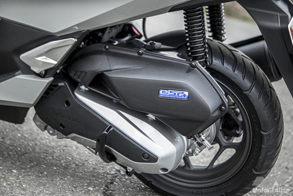 なお5代目のエンジンとシャシーの基本設計は4代目と同様なのだが、実際に2025年型PCX125/160を走らせた僕は、フロントサイドカバーのスリム化による足元のスペース拡大、新作スクリーン(高さは先代+約15mm)&フロントカウルで実現した防風性能の向上、空力の改善やハンドルウェイトの配置変更によってわずかに軽快になったハンドリングを認識。いずれにしても“プレミアム&パワフルPCX”をキーワードとする5代目は、2010年登場の初代から継承してきた“パーソナルコンフォートサルーン”としての資質を維持しながら、先代以前とは異なる魅力を獲得しているのだ。