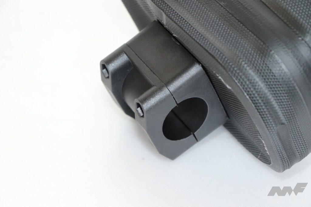 取り付けできるハンドル径は付属のスペーサーを使うことで、Φ22mm/Φ28mm/Φ32mmに対応。ただしハンドルブレースのあるハンドルバーには装着できないのでご注意を。もう少し大きいほうが……なんて方は、Lサイズ(1.3ℓ))もあるのでそちらをどうぞ~。