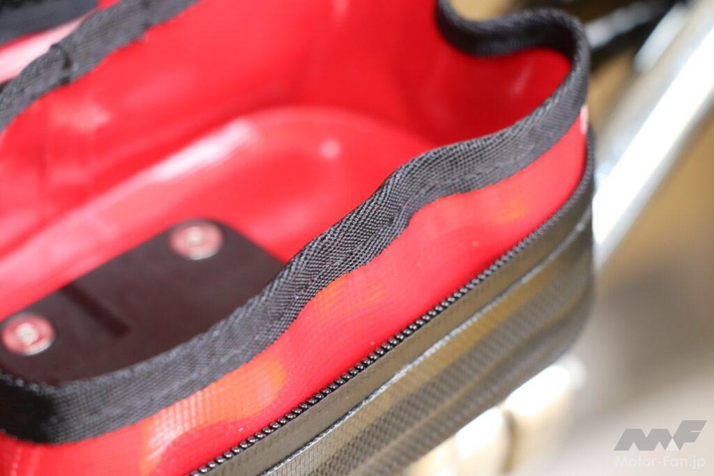 メインスペースには財布やカード入れ、鍵などの貴重品類も一緒に入れることができるため、必要最低限の荷物ならハンドルバーバックだけで収納を完結することができる。