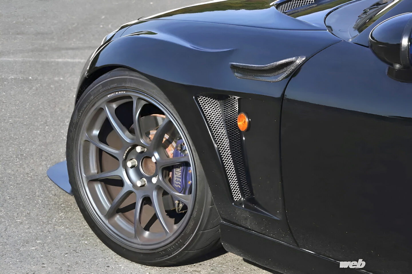 エンジンパフォーマンスでは限界があるため、後はロードスターの美点であるコーナリングスピードでパワー不足をカバーするしかない。そこで、前後に255/35幅の18インチ(ポテンザRE-71R)を履き、ハイグリップなワイドタイヤを活かすセットアップを展開。ホイールはボルクレーシングZE40(9.5J×18+45)だ。