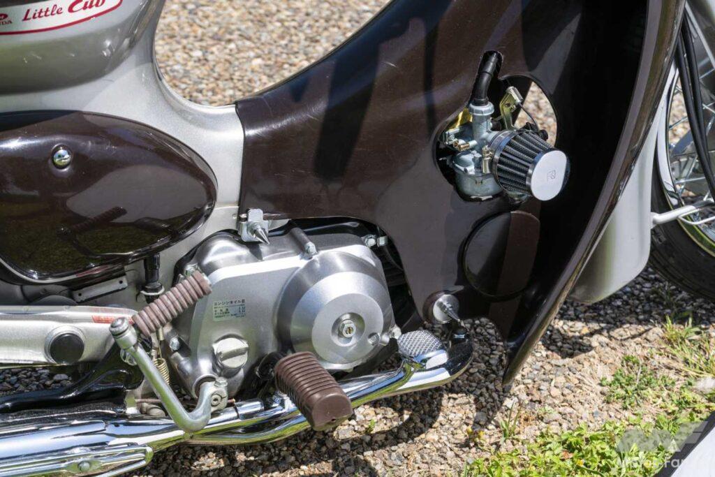 そんな“ノーマル尊重派”が思わず振り返るのが、このリトルカブ。外装はほぼ純正ルックながら、極限まで落とし込まれた車高で自走する姿はインパクト抜群。二度見必至の存在感を放つ。