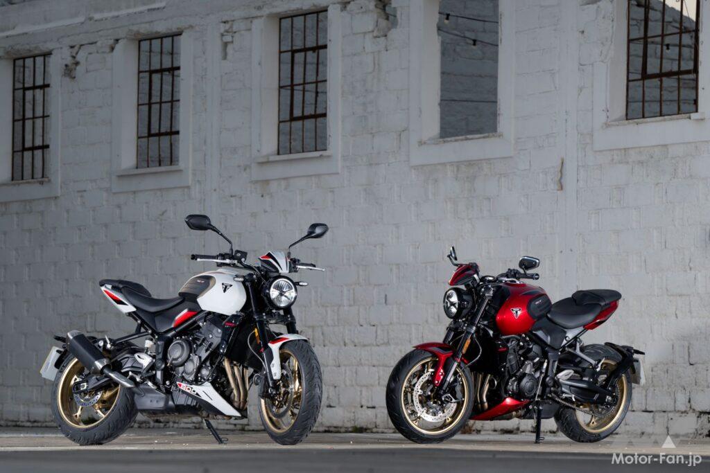 排気量を拡大した798ccの水冷3気筒は115psを発揮。中回転の厚みから高回転の伸びまで気持ちよく回り、あのトライアンフらしい3気筒サウンドもしっかり楽しめる。軽量スチールフレームに前後SHOWA製サスを組み合わせ、車重は200kg以下。軽快で扱いやすいのに、ブレーキもラジアルキャリパー装備と手抜きはない。また、ライディングモードやコーナリングABSにトラコン、クイックシフターにクルコンまで標準装備するなど電制も充実。日本価格124万9000円が特価に思える充実した内容となっている。