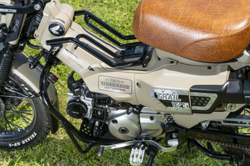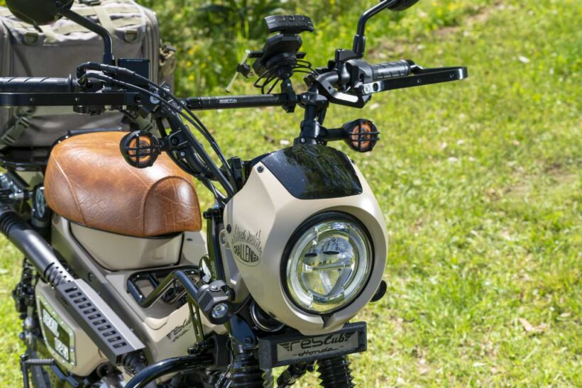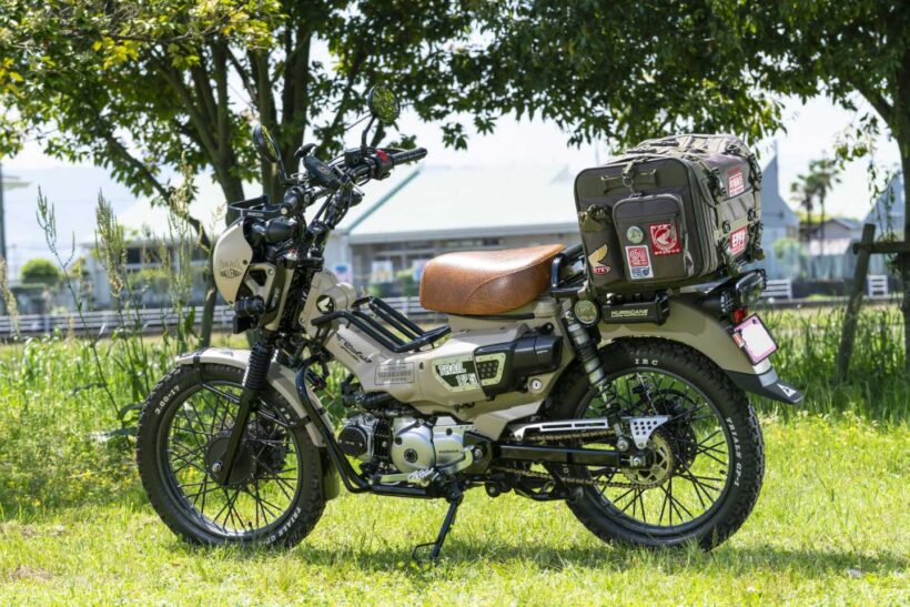 バイクカスタム レブルのヘッドライトを移植!ハンターカブのカスタムで、ぜひ参考にしたい!【写真・5枚目】 あえてハードケースは使わず、デイトナ製バッグをチョイス。ステッカーではなくワッペンでデコレーションするセンスも光る。 機能性を高めつつ、レブル用パーツ移植で独自性を演出。ブラックの使い分けも見事だ。 ブル純正ビキニカウルを加工流用し、ウインカーもレブル用を装着。ポジション点灯するよう配線加工している。 Gクラフト製センターキャリアは、デイトナ製エンジンガードに合わせツヤありブラックにペイント。ヘッドカバーはピラニア製。 マフラーはモリワキ製ブラックを選択し、車体を引き締める。K&H製ハイシートは快適性と質感向上を両立。 この画像の記事を読む