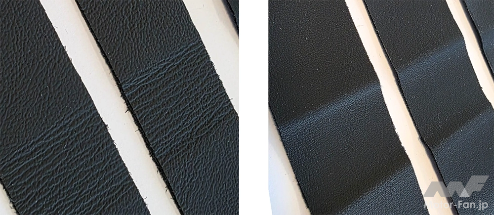 テイラーフィットはポリウレタンベースの合成シート素材で、従来の本革に匹敵する触感を実現する。天然皮革の滑らかで柔らかな肌触りを忠実に再現し、同時の表面コーティングにより高級感あふれる心地よい触感を実現している。また、テイラーフィットは本革よりもしわや折り目が生じにくく設計されており、経年を経ても洗練された外観が維持しやすい。日産は持続的な品質確保のため、サプライヤーと連携しシート素材に厳格な試験を実施する。