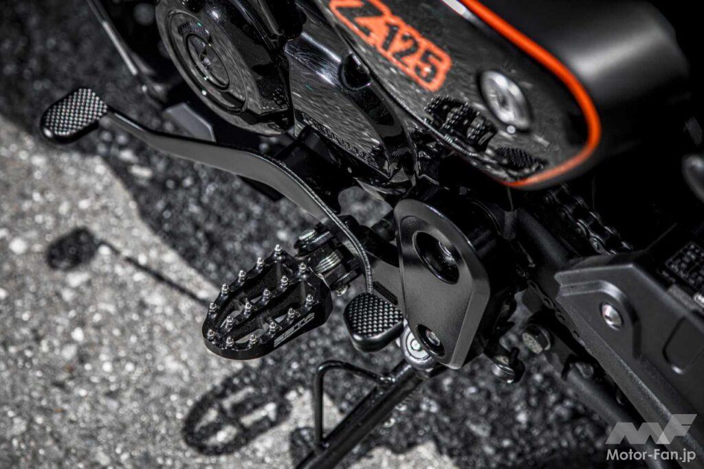 黒い外装はすべてオーナーによる全塗装。オレンジのストライプもシートではなく塗装仕上げで、車名や「Z125」デカールもオリジナルデザイン。パーツに頼りすぎない、塗装センスで魅せる好例だ。