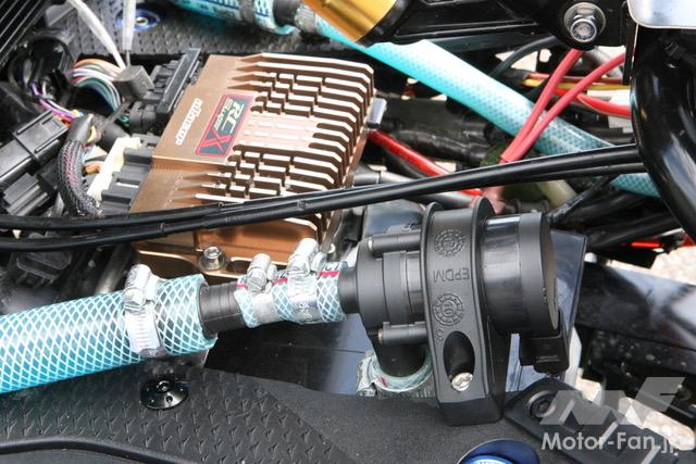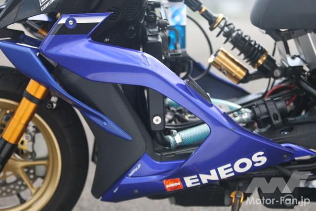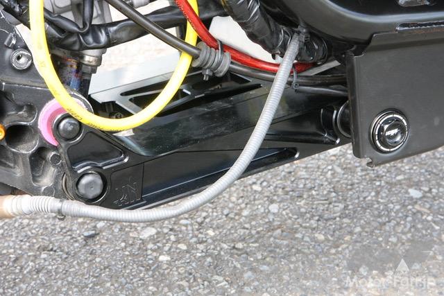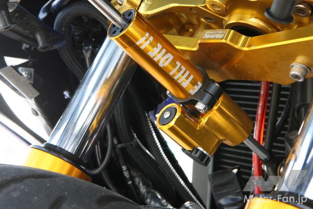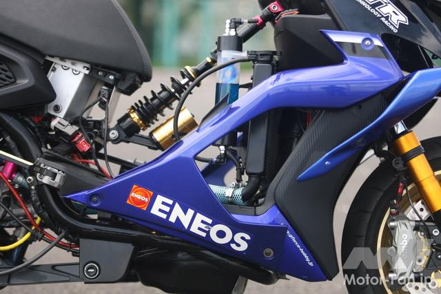 また、大型ラジエターをステップ前方に設置したことにより、aRacerやオイルキャッチタンクの設置位置を変更している。他にも100mmロングのエンジンハンガー装着により車高は50mm程度下げられていたり、他では見かけない位置へのステアリングダンパー追加など、車体全身にオーナーならではの創意工夫が盛り込まれ、話題だらけのグリファスとなっている。