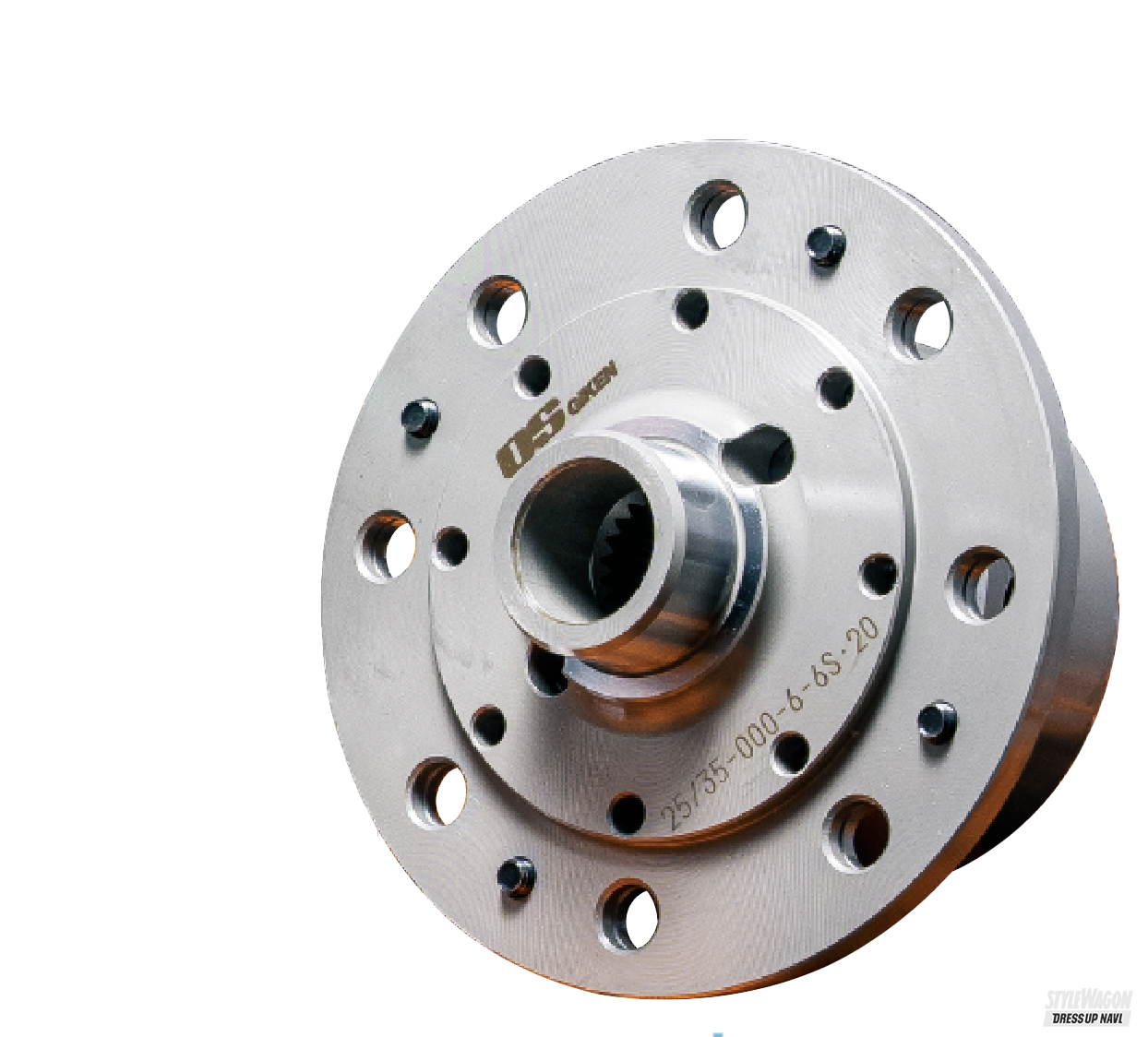 OS技研のLSDの特徴は特許を取得したスプラインスルーサイドギア構造により、一般的なLSDと比較してディスクプレート枚数を増やせる点だ。枚数が増えればディスクの摩擦力を上げなくとも圧着力を高められるため、OS技研製のディスク表面は他社製品と比べてツルツル。摩耗も少なく、余計な滑りも出ないため、LSD特有の鳴きもほぼ皆無。ゆえに長持ちするのだ。