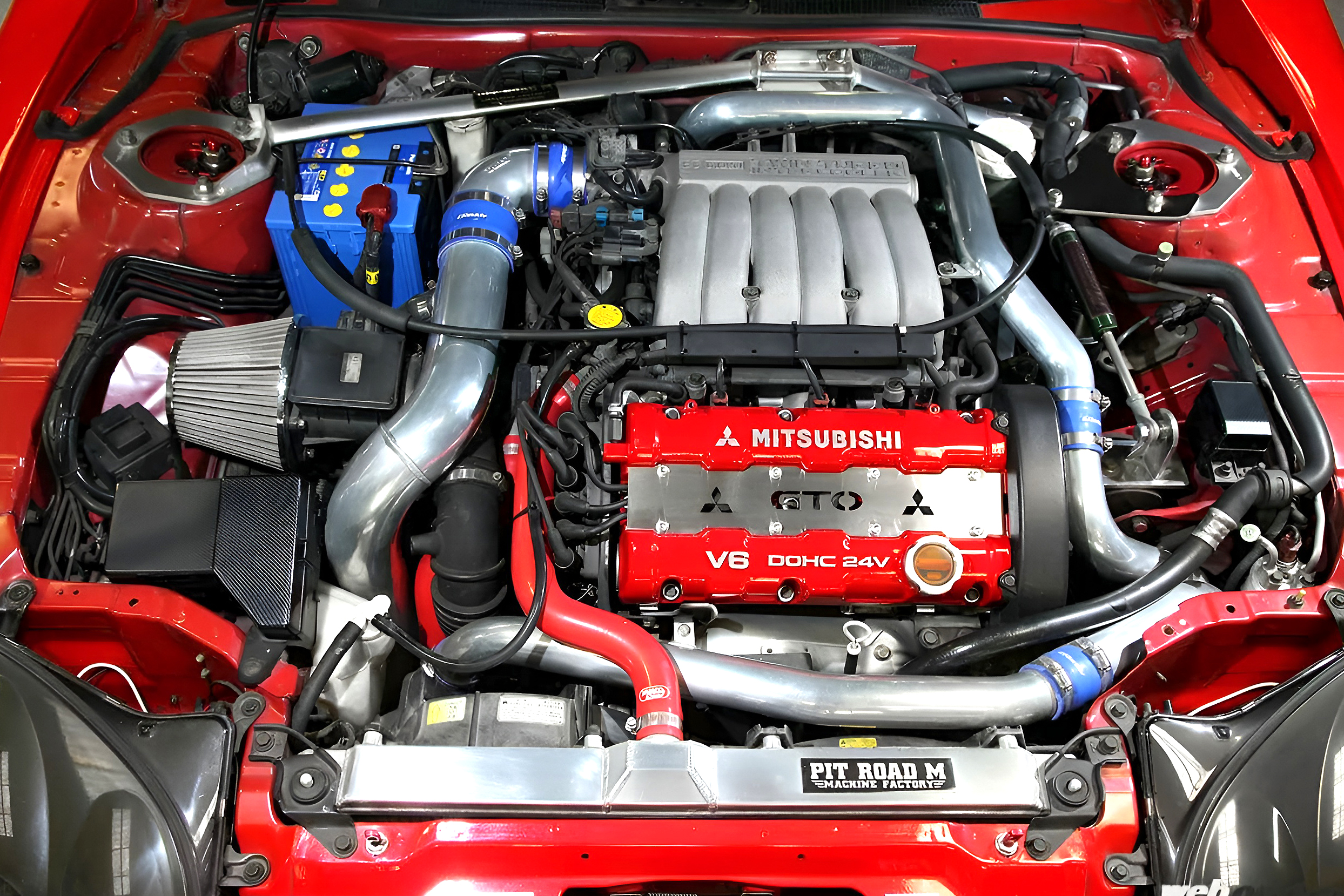 そう話してくれた大西さんのGTOは中期型で、ヘッドライトやBピラーパネルの交換によって最終型ルックへと変更。チューニングやメンテは、GTOと言えば真っ先に名前が上がるピットロードMが担当する。