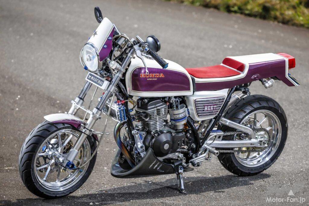 ボリューム感あるFRPシートカウルと白×紫のオールペンで、オールドルックへ大胆にイメチェン。カウルやバイザー、塗装までもDIYで仕上げ、「ヨンフォアのレーサー風」を実現するなら自分で作る!という気概が伝わってくる。
