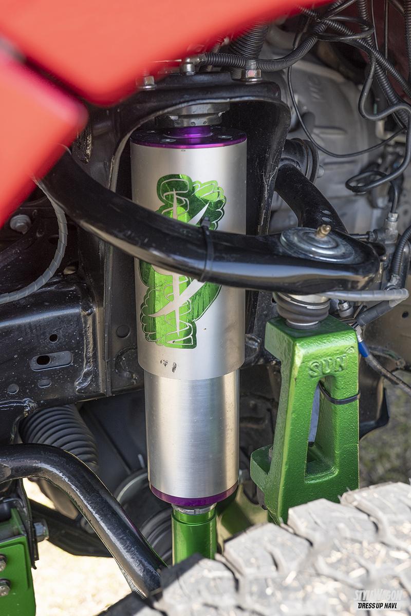 WHEEL/SCSホイール・RAY10(17×9.0J-38) TIRE/BFグッドリッチ・オールテレーンT/A KM2(37×12.5R17) EXTERIOR/フロント=TODA、サイド&テールレンズ&ルーフマーカーランプ=ノーブランド、トノカバー=SPDクリエーション SUSPENSION/エアサス=SPDクリエーション、メンバーダウンキット=SUN4x4 ほか MAKING SHOP/SPDクリエーション