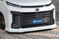 ヴォクシー用、ノア用ともに基本となるデザインは同様。フロントとサイドは厚さわずか10㎜のフラップ形状で、シンプルながらもフロントは両端がカナード風に立ち上がり、サイドは後方が鋭いクランクを描くなど、躍動感をダイレクトに演出できるスタイリング。リアはクールならではのフローティングディフューザーで、反り上がった独特の形状が疾走感を盛り上げる。