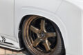 オーバーフェンダーキットは片側9㎜ワイドだから車検も安心で、同時にフェンダーアーチを約15㎜下げる効果も備わっているオーバーフェンダー。エアサスと併用すればフェンダーがガッツリと被るスタイルも実現できるため、ローダウン派は必須だ。適度な角張り感が精悍。ソナーの有無にも対応可能。