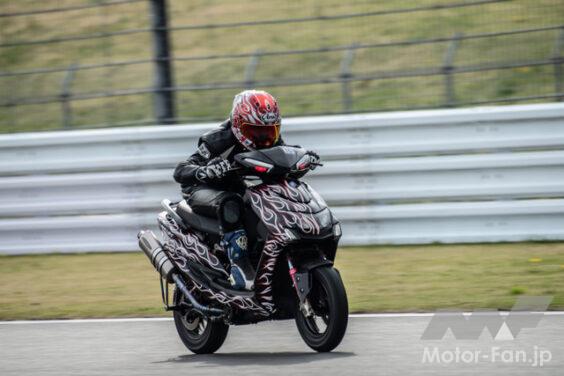 フロントフォークはスズキのグース350用倒立タイプとし、ホイールはNSR50用の12インチ。