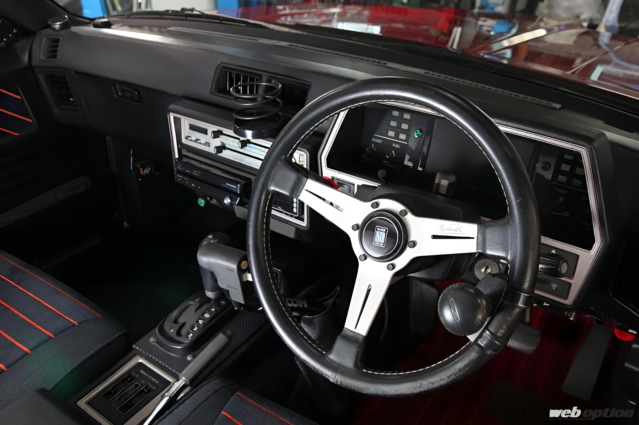 また、足回りはフロントの車高調を製作し、リジッド式となるリヤはショートスプリングに他車種用ダンパーを流用して程良くローダウン。フロントブレーキは、キャリパーをR32タイプM純正4ポットに交換することで制動力アップが図られる。