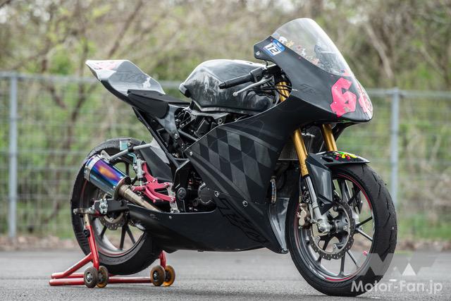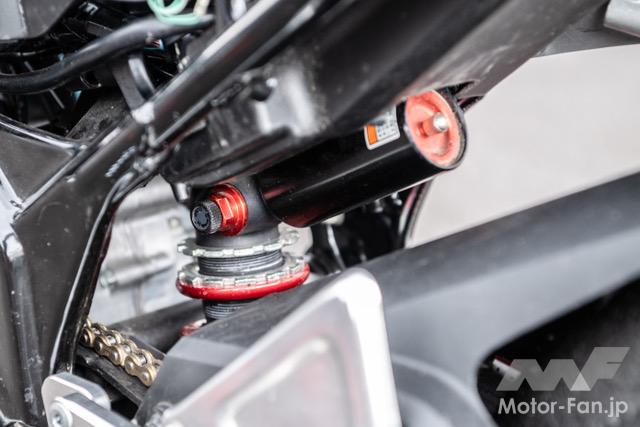 リヤショックはCBR250RR用を使用。いつもは耐久レースに使用しているマシンとのことで、足回りのセッティングは気を使っているところだろう。