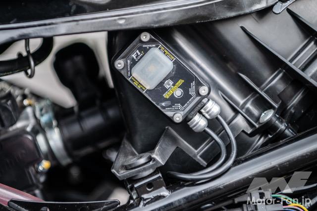 SP武川製のFI CON2を使用して燃調などをセットアップ。市販パーツが少なく、オーナーが試行錯誤して様々なアイテムを取り入れている。