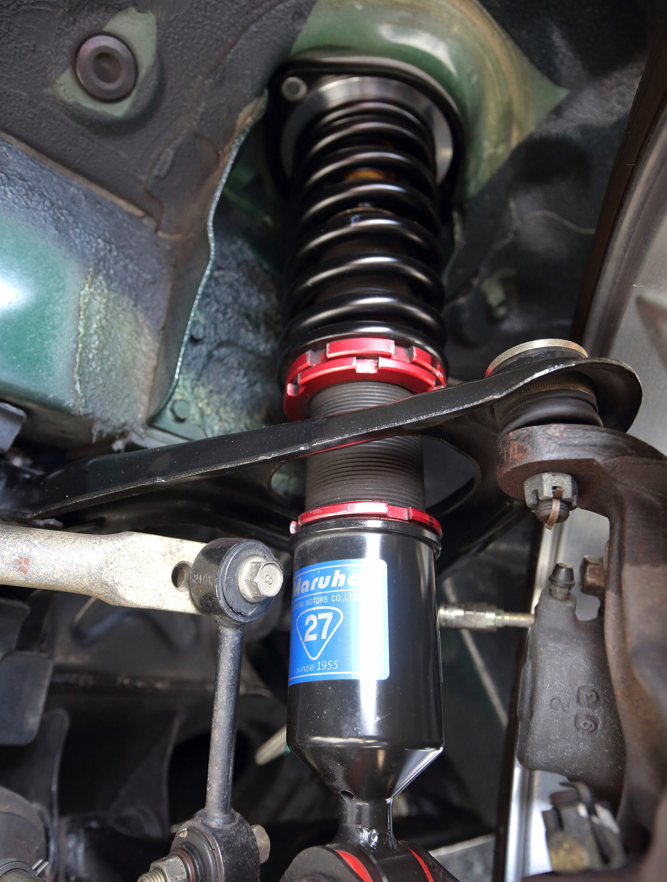 サスペンションはマルハモータースオリジナルのBCダンパーを軸に構築。フロント8kg/mm、リヤ6kg/mmのスプリングレートは、軽量なNAロードスターにはややハードめなセットアップと言えるが、スポーツ走行にも対応させるための策だ。
