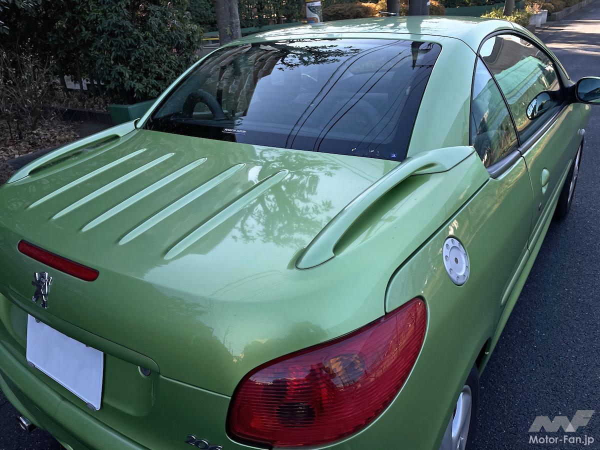 CCとはクーペカブリオレのことで、ハードルーフを格納してオープンカーとすることができるモデルだ。もともとは1930年代のプジョー601のラインナップとして採用されたが、その再来が206CCとなった。この複雑な構造を、コンパクトなモデルに、またプラス2とはいえ4人乗りモデルとしてよく採用できたものだ、と思う。