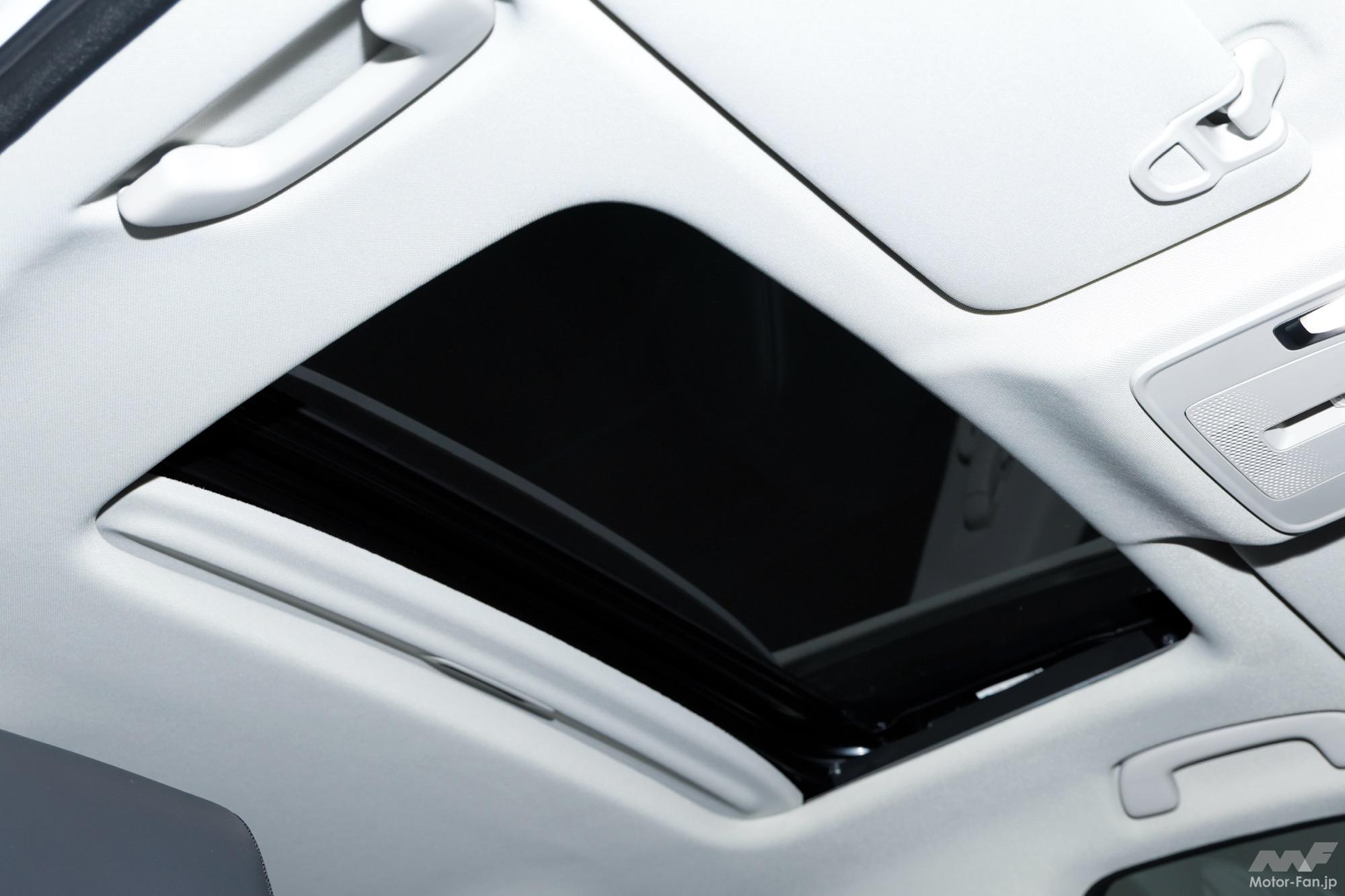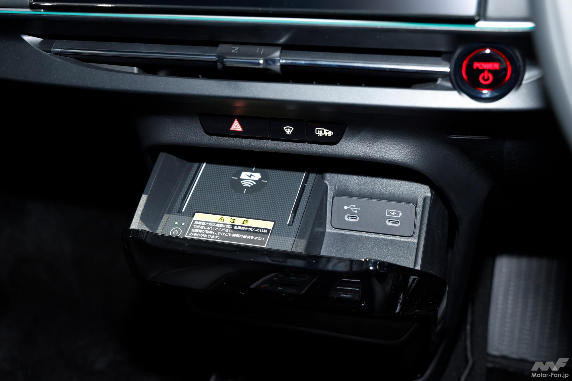 インテリアは水平基調のダッシュボードに12.8インチの大型ディスプレイを配置。薄型のデジタルメーターとともに先進的なコクピットを構築し、コネクテッド機能や先進運転支援システムも備える。前席は高めのアイポイントにより見晴らしの良い視界を確保。運転席と助手席の間に壁を設けないセンターコンソール構造とし、前席ウォークスルーを可能としている。後席にはリクライニング機能を採用し、足元スペースも広く確保。さらに日常の買い物から週末レジャーまで対応できる大容量ラゲッジも備える。