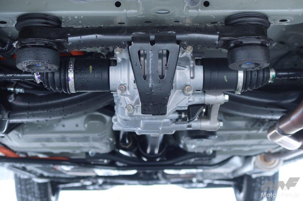 4WDシステムは「リアルタイム4WD」と呼ぶホンダ独自開発の機構を採用する。油圧ピストンによるクラッチの押し付け力により、後輪への駆動力配分をアクティブに制御する仕組みだ。搭載する各種センサーの情報からアンダーステアやオーバーステアなどの車両挙動を精度高くかつリアルタイムに把握し、刻一刻と変化する車両状態に対し駆動力配分を最適化する。