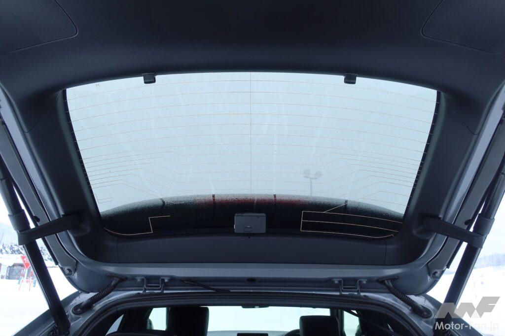 というような高いハードルがあるのを承知で、ヴェゼルRSはリヤガラスアンテナの採用に踏み切った。どれだけ大仕事だったかというと、アンテナの設置に必要なハーネスを這わせるために、リヤゲートのガーニッシュを専用に設計したほどである(厚みが増えている)。それほどまでに1550mm以下の全高が欲しかったのだ。