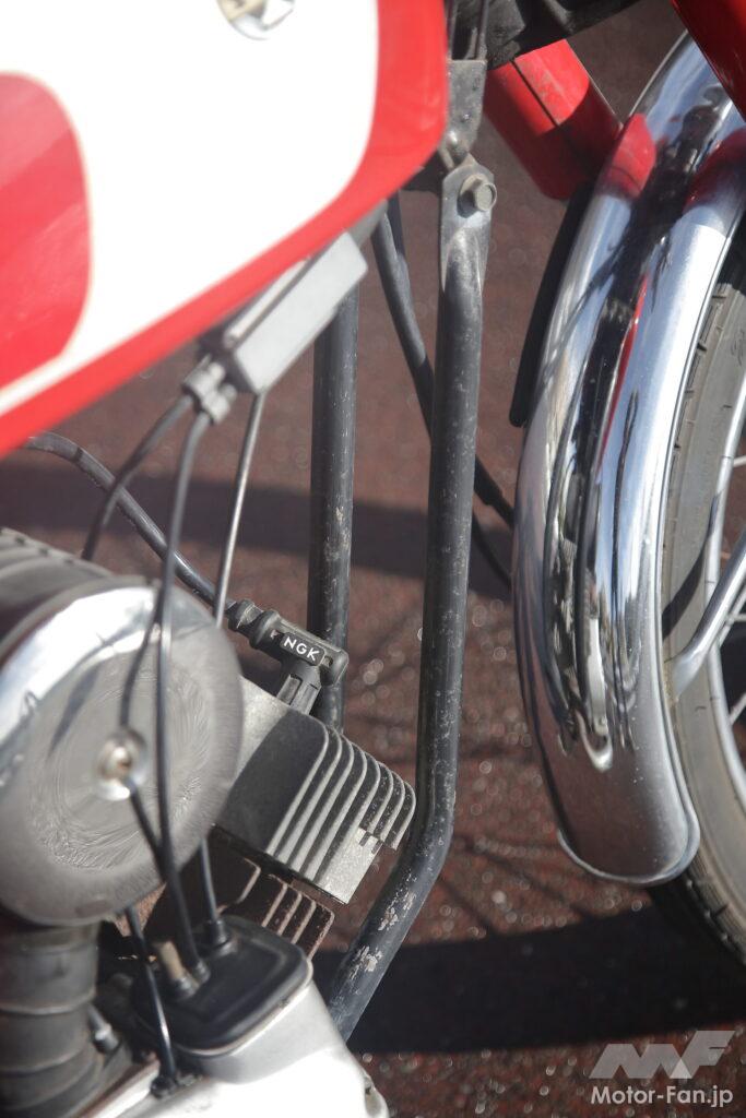 とくにアンダーチューブはオリジナルのYB50にも、後のYB-1 Fourにも、他社ライバル勢(ドリーム50除く)にも存在しないアイデンティティになっており、筒型の大きなエアクリーナーボックスとの相乗効果で車体の〝スカスカ感〟をなくすことに成功している。