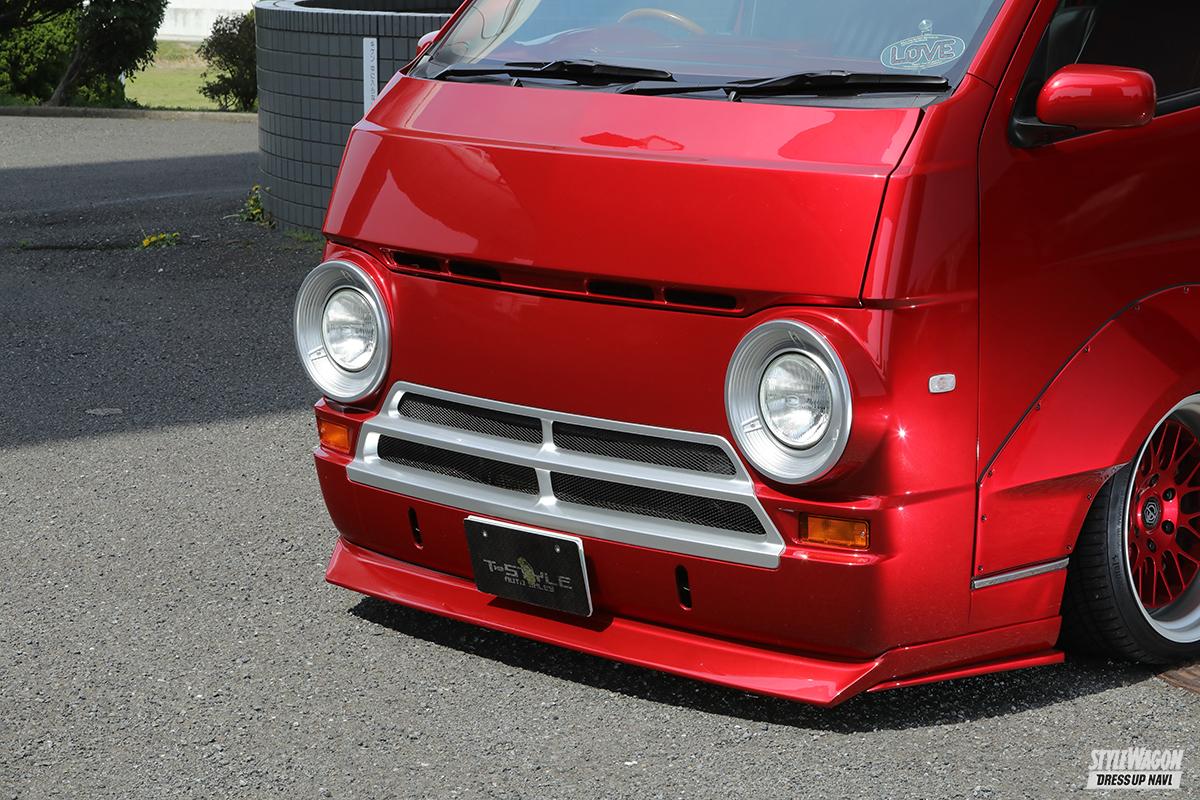 様々なハイエースカスタムを提案してきたプロショップ兼メーカーであるTSDスタイリング。ここ最近推してきたダッジ顔のレトロスタイルの集大成とも言える2台が完成した。TSDスタイリングのフェイスキットで実現するダッジA100カスタム。ダッジA100とは、1960年代にアメリカで登場したキャブオーバーバンで、日本のバニング文化にも影響を与えたバンカスタムのベースとして人気だったクルマだ。TSDのキットは、ナロー用でフェイス周り一式と、リアを観音開き風に仕立てるゲートカバー、サイドのポト窓キットからなる。2台のデモカーは、それをベースに、同社のワークスキットと組み合わせたレーシーな仕様と、新展開のハイエーストラック仕様へと進化。どちらも個性溢れる圧倒的な存在感を放つ。ワークス仕様はワンオフパーツも少々加わっているが、基本的にはどちらもTSDスタイリングでコンプリートカーとして購入することも可能。レトロなハイエースカスタムが気になる人はぜひ!