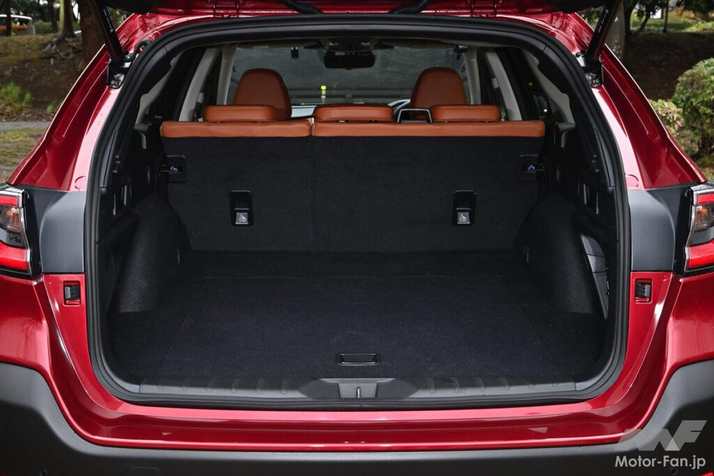 逆にソルテラから延長されたリヤオーバーハング(+155mm)だが、これはアウトバックよりもまだ短い(−28mm)。にもかかわらず荷室容量が拡大されているのだ(後述)。