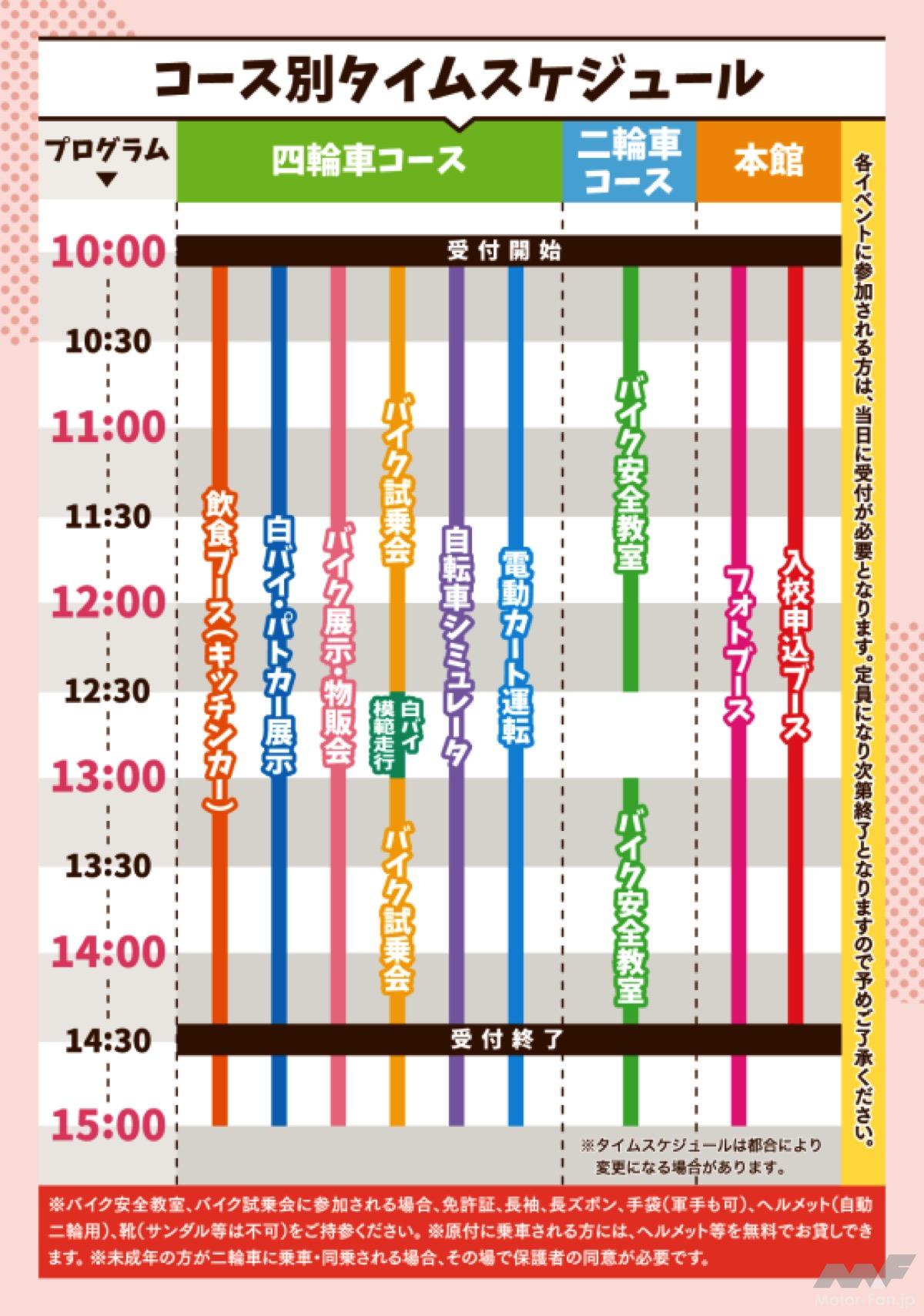 2025年4月29日(火・祝)、福岡市西区の姪浜ドライビングスクールにて、「第14回 春のバイクフェスタ in 姪ドラ」が開催される。このイベントは約500人規模を想定し、家族連れでも楽しめる内容となっている。当日は、最新バイクの試乗・展示、白バイ隊員による模範走行、安全教室などが実施される。また、子ども向けの電動カート運転体験や自転車シミュレータ、キッチンカーの出店も予定されており、幅広い年齢層が楽しめるプログラムが用意されている。会場には60台分の駐車場が完備されており、アクセスも良好。入場は無料で、開催時間は10時から15時まで。バイク愛好者はもちろん、家族でのレジャーとしても最適なイベントとなっている。
