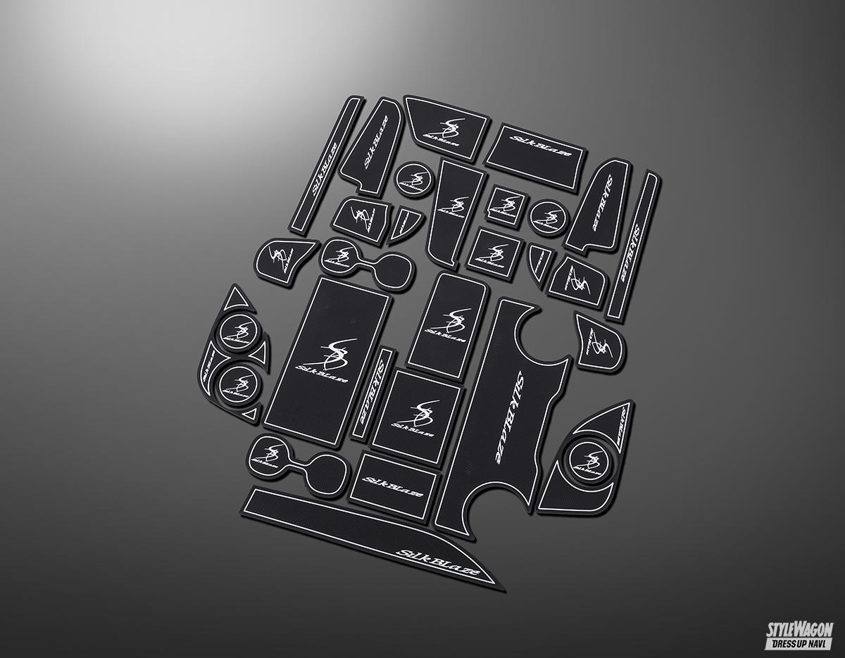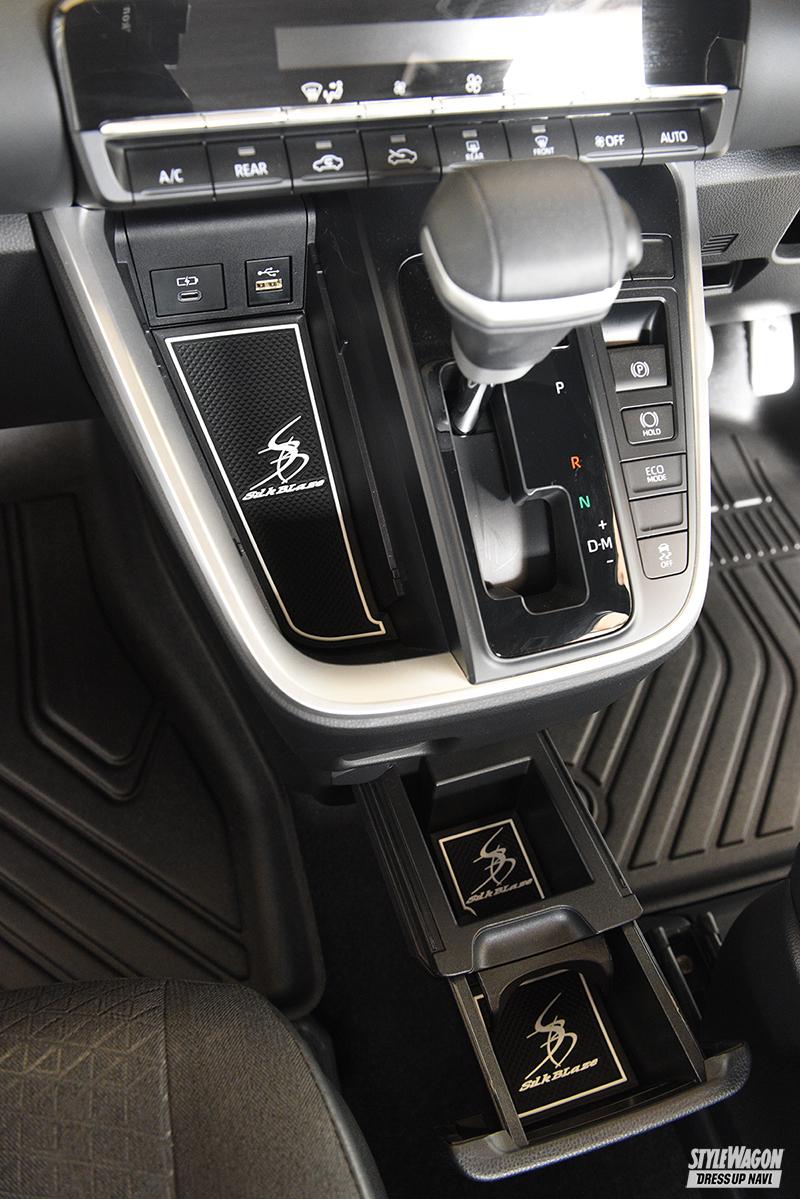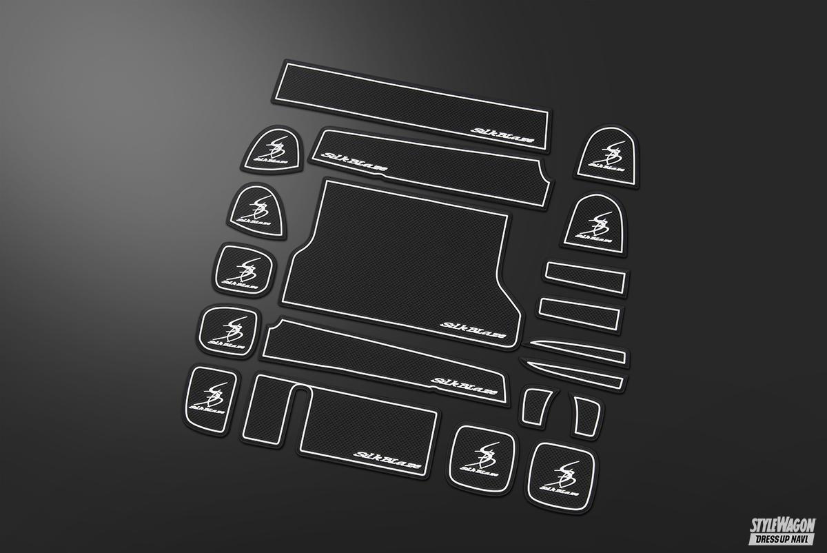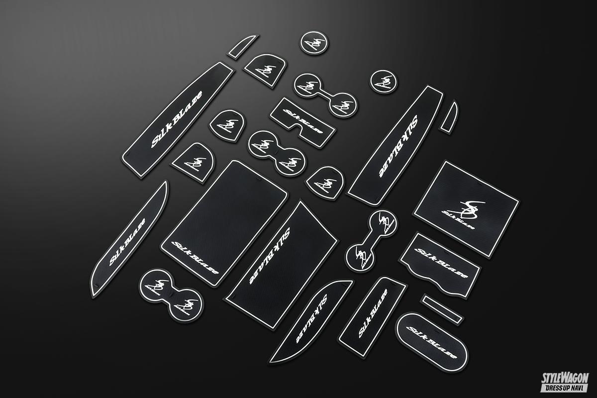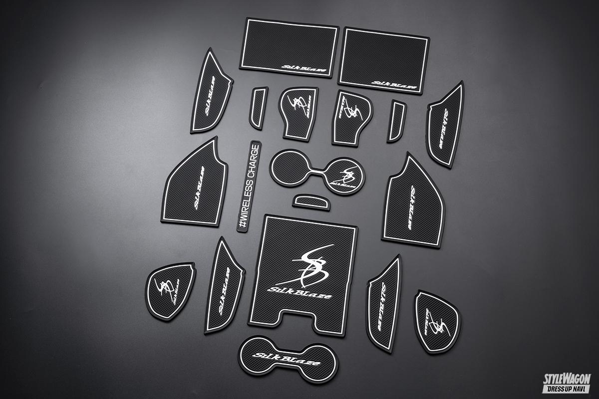 そこであると便利なのが、シルクブレイズのラバーポケットマット。優れたグリップ力で小物を安定して置ける特殊なラバー素材をマット表面に使用し、走行中の小物のズリ落ちを防止。気になるカタカタ音やキズ付きを防ぐことで、快適なドライブをサポートしてくれるのだ。汚れたら水洗いもできるので、メンテナンスもイージー。使い勝手も申し分ない。しかも、このマットは車種専用設計で、あらゆる純正ポケットに対応する1台分セットで展開している。細部にいたるまで、車内を一気にトータルコーディネイトできるので、ドレスアップ的にも有効。設定車種も豊富で、価格もリーズナブルと、至れり尽くせりだ。