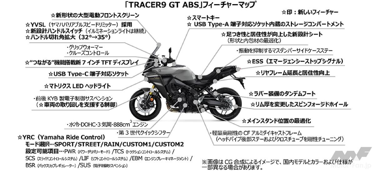 このように、「TRACER9 GT ABS」2025年モデルは、最新の技術とデザインを融合させ、多様なシーンでの快適なライディングを提供するモデルとして注目されている。ライダーのニーズに応える充実した装備と性能を備え、さらなるバイクライフの充実をサポートする一台となっている。