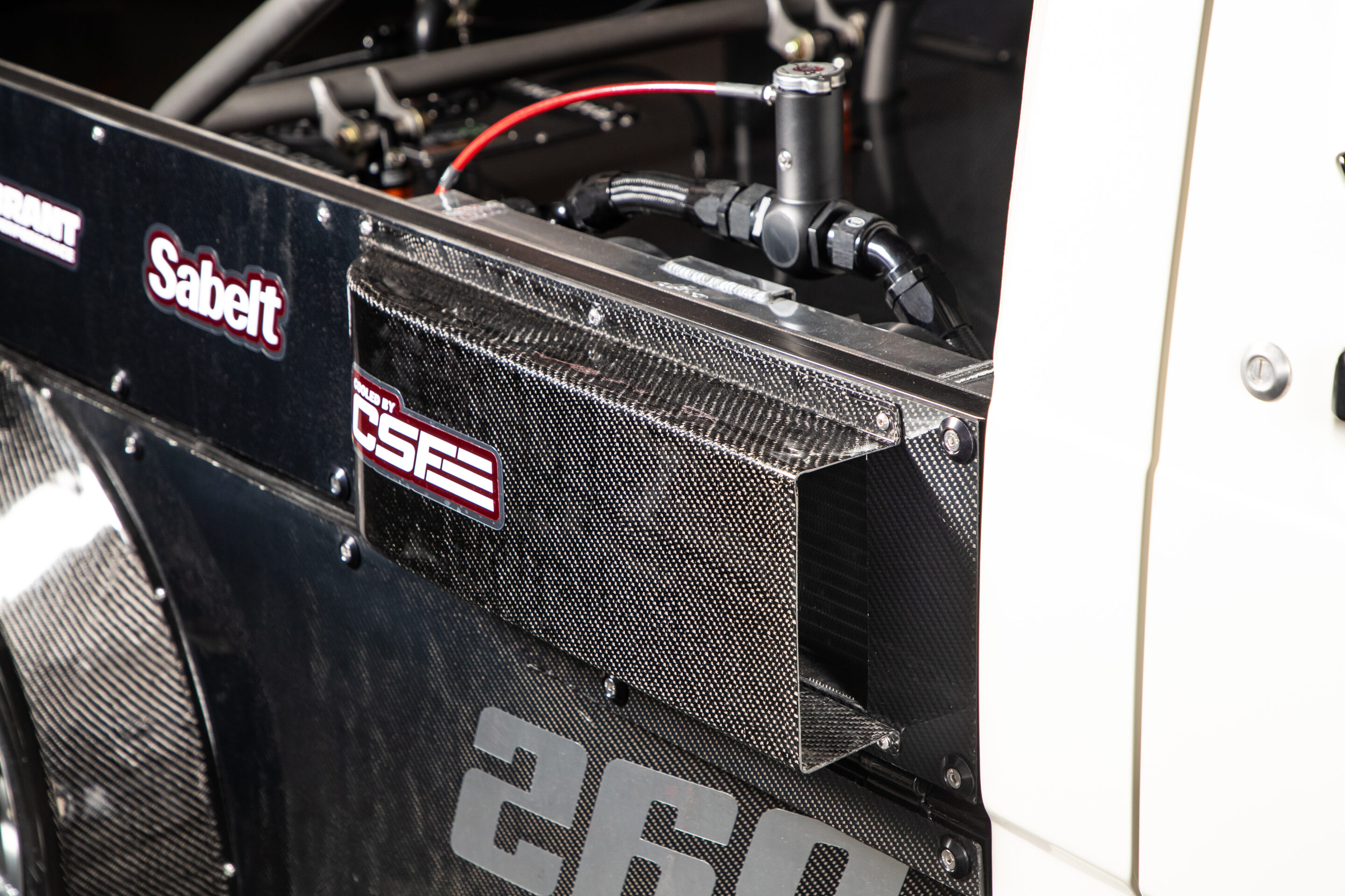 CSFのデュアルパスラジエターとオイルクーラーも荷台の両サイドに備え、風が届くようカーボンダクトも設置。フィッティングやホース、オイルキャッチタンク、リモートオイルフィルターなどは、ショーンがアメリカ国内の代理店を務めるイギリスのHELパフォーマンス製を使用する。