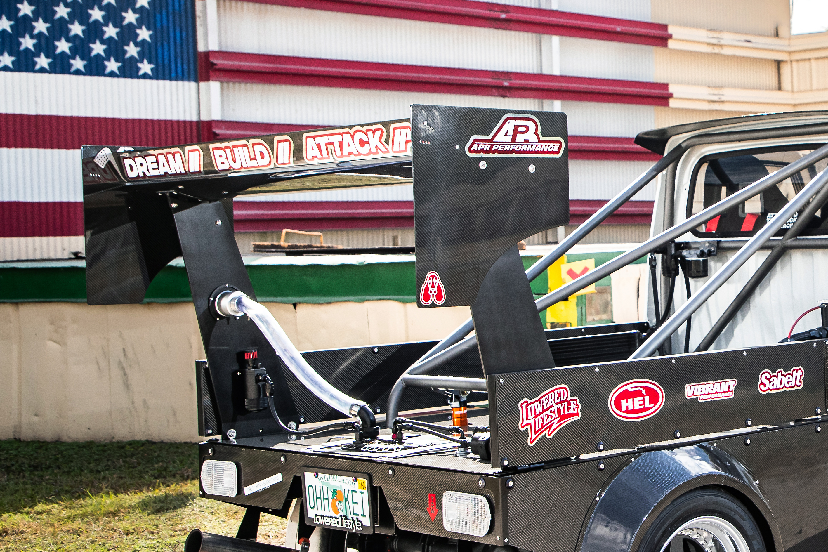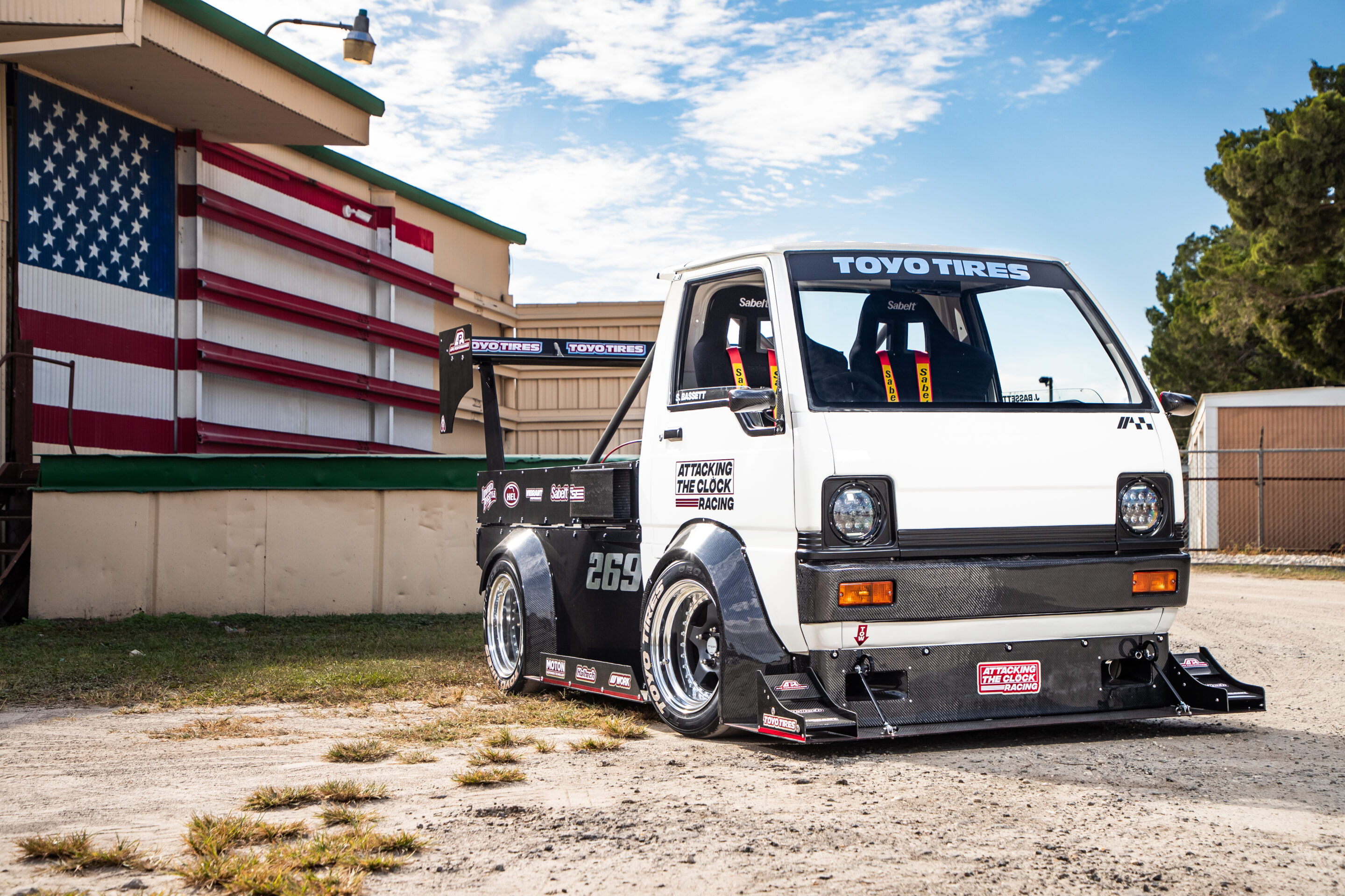 日本伝統のワークホースである“軽トラ”。なぜか最近アメリカで妙に流行っており、一般的には広大な農地の移動手段などとして使われている。だが、我々の知る限りタイムアタックマシンとして使おうとしているのは、フロリダ州でプロショップ『アタッキング・ザ・クロック・レーシング』を経営するショーン・バセットをおいて他にいない。