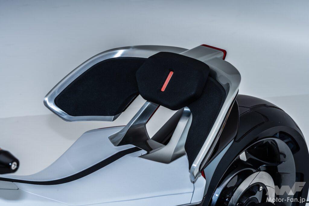 To create “surprise and excitement,” attention was first directed to the riding position. Based on the idea that “a rider’s physical sensation changes dramatically depending on seat height, and that a difference in riding position is key to an unknown riding experience,” the layout began from the rider’s position — lowering the hip point and pushing the eye point as low as physically possible — in order to produce a refreshing field of view and an overwhelming sense of acceleration not achievable on conventional two-wheelers. Honda aimed for a seat height that stands out as exceptionally low even within its own two-wheeler lineup.
