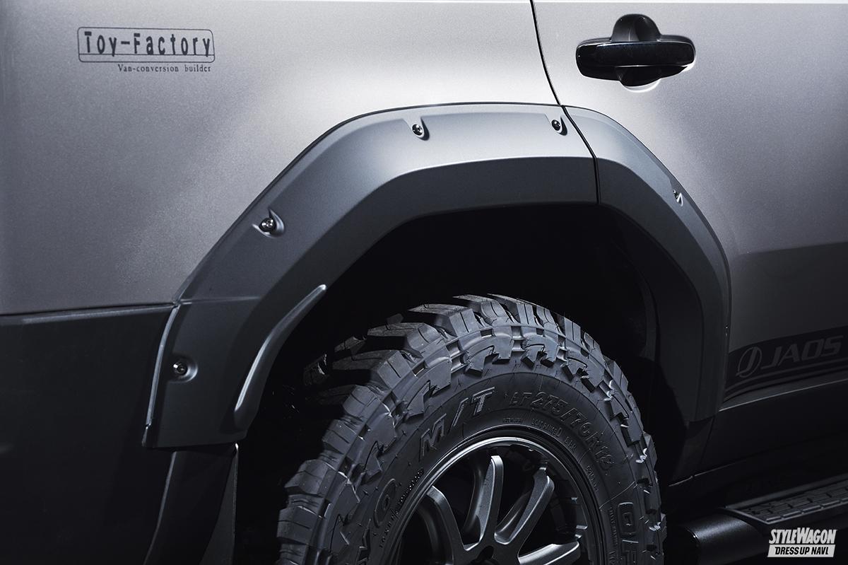 用意されるのはプロテクターをモチーフとしたフロントバンパーガードやワイルドなフェンダーガーニッシュ、王道のマッドフラップにエンケイと共同開発した専用ホイールなど、どれもラギッド感満載で冒険心を掻き立てられるモノばかり。純正の無骨なスタイリングをしっかりと底上げできるプログラムを展開。ランクルらしさを際立たせつつ純正との差別化を図りたいなら、どれも絶対に見逃せない。